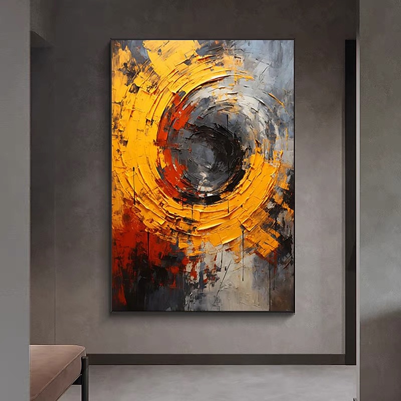 Abstract Bright Yellow Color Texture Thick Acrylic Painitng Large Size Palette Knife Oil Painting Canvas Wall Picture Art Rolled Canvas (No Frame)
