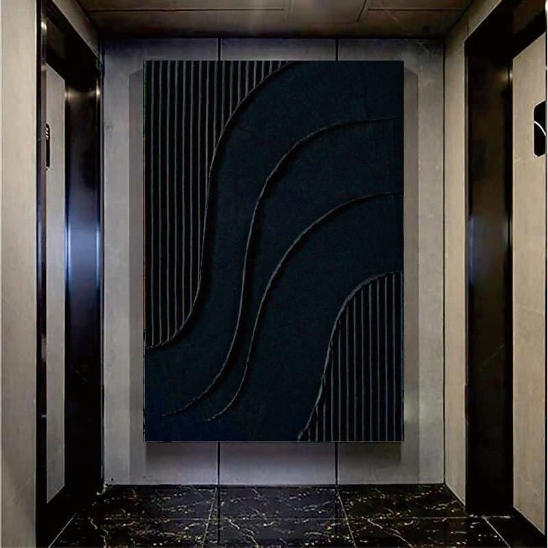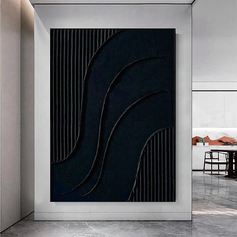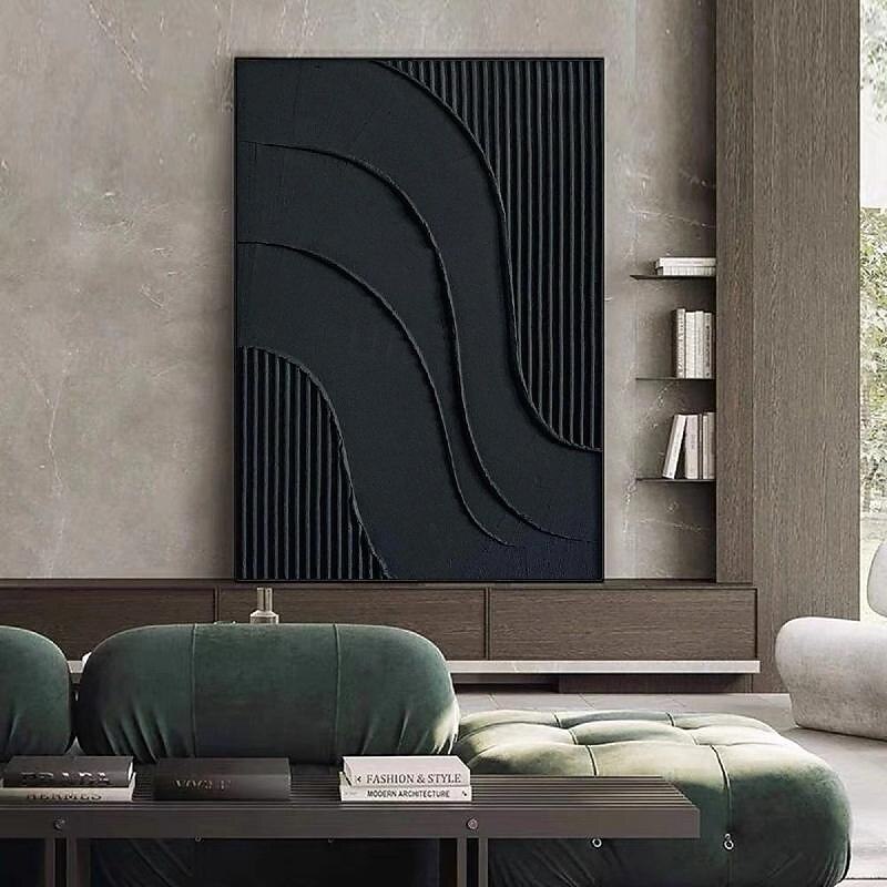 Why Choose White Abstract Painting hand painted 3D Textured oil painting Wall Art Black current Canvas Art for Living Room Decor Trendy Home Decor Hotel Art Piece?