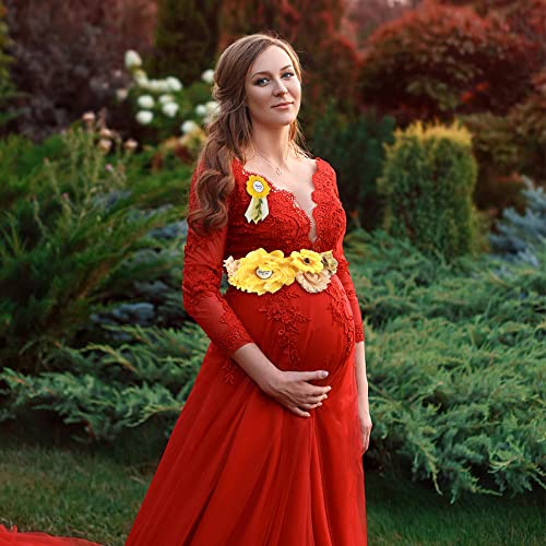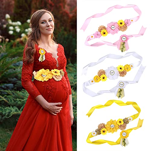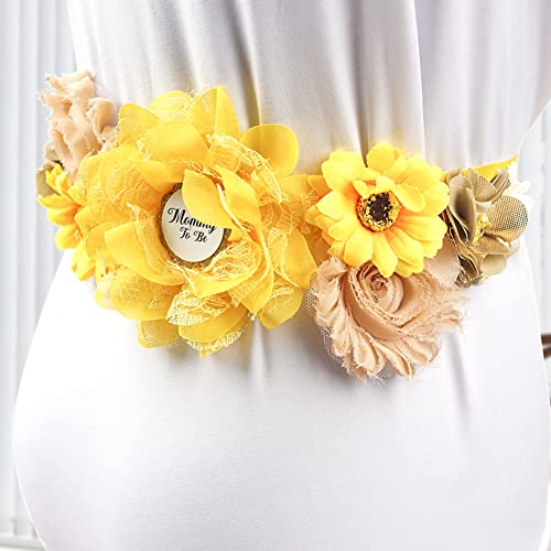 Cute Floral Pregnancy Sash Belt Fall Theme Maternity Sash Belt for Dress, Sunflower Silk Ribbon Women Girls Flower Sash Belt for Baby Shower Wedding Party
