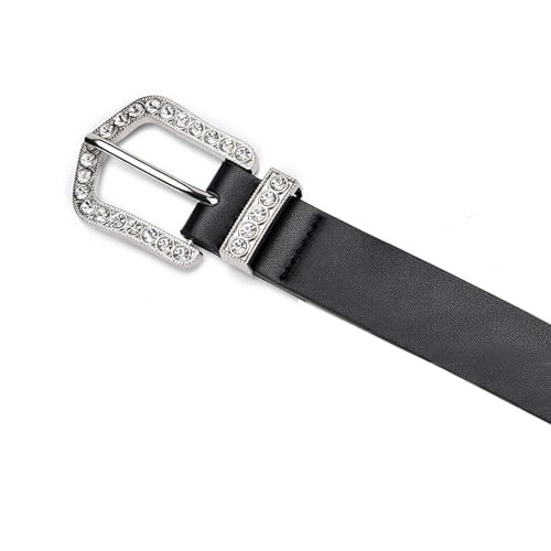 - Female metal adjustable belts also featuring chic, d ring, metal buckle, jeweled.