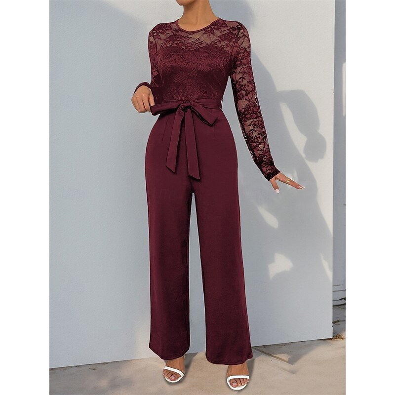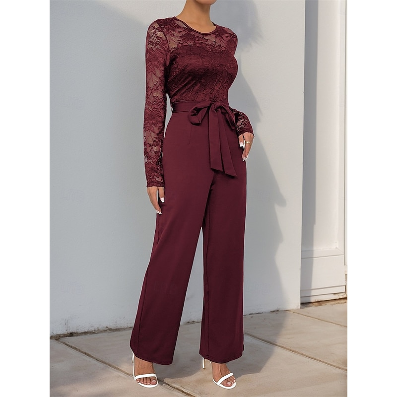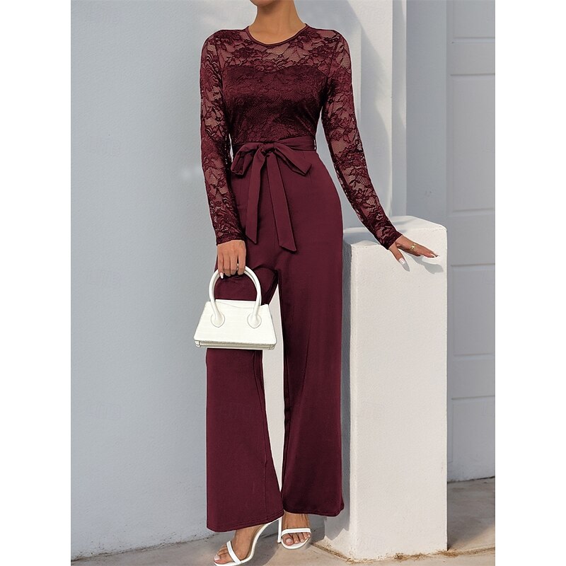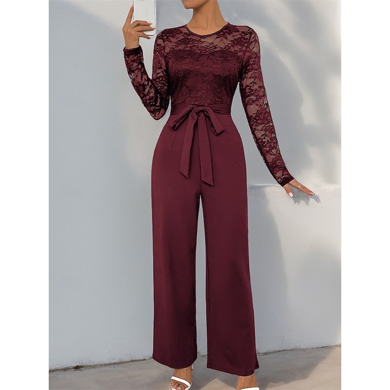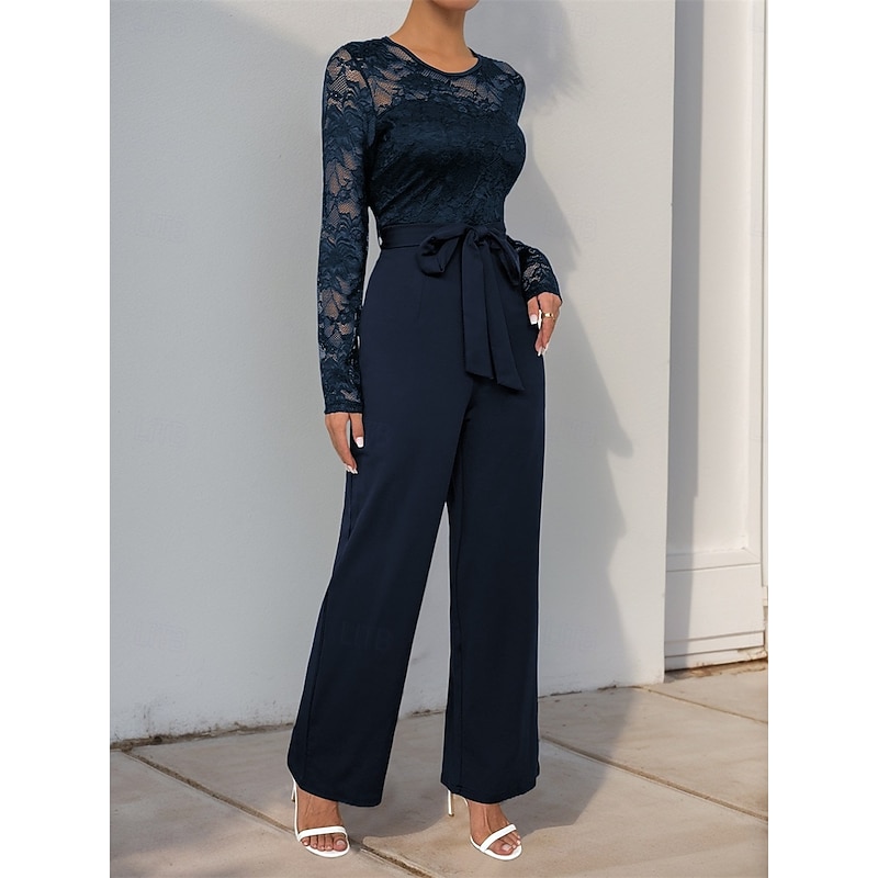 Jumpsuit / Pantsuit Mother of the Bride Elegant Casual Jewel Neck Floor Length Polyester Long Sleeve with Lace
