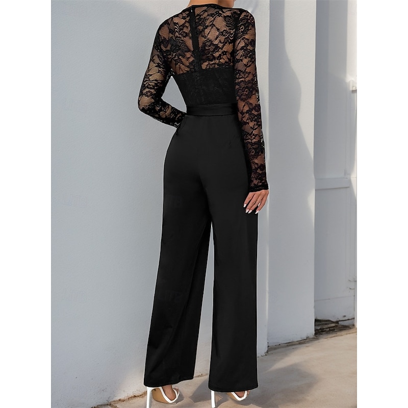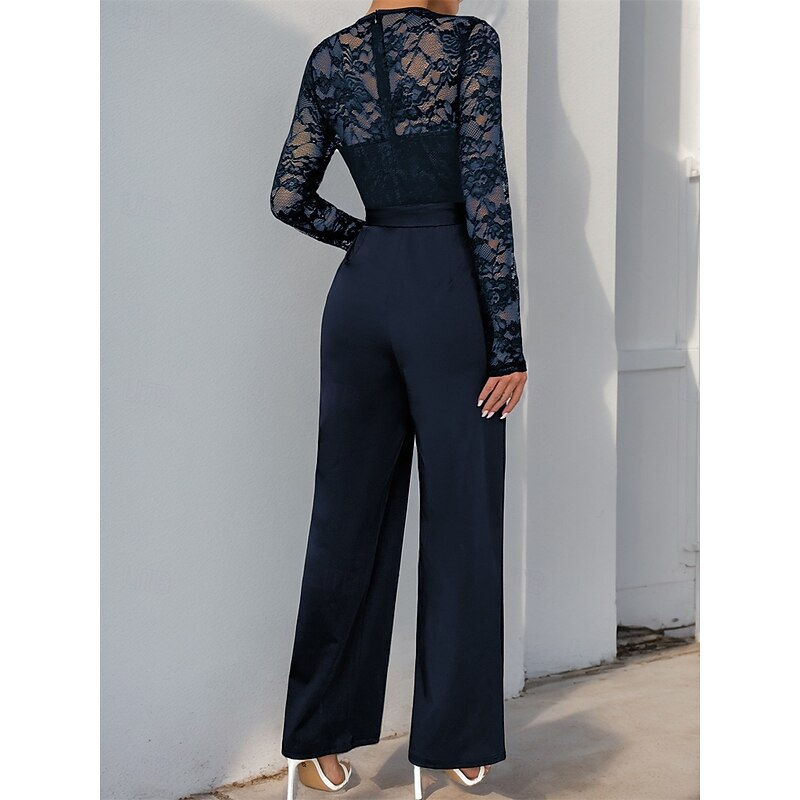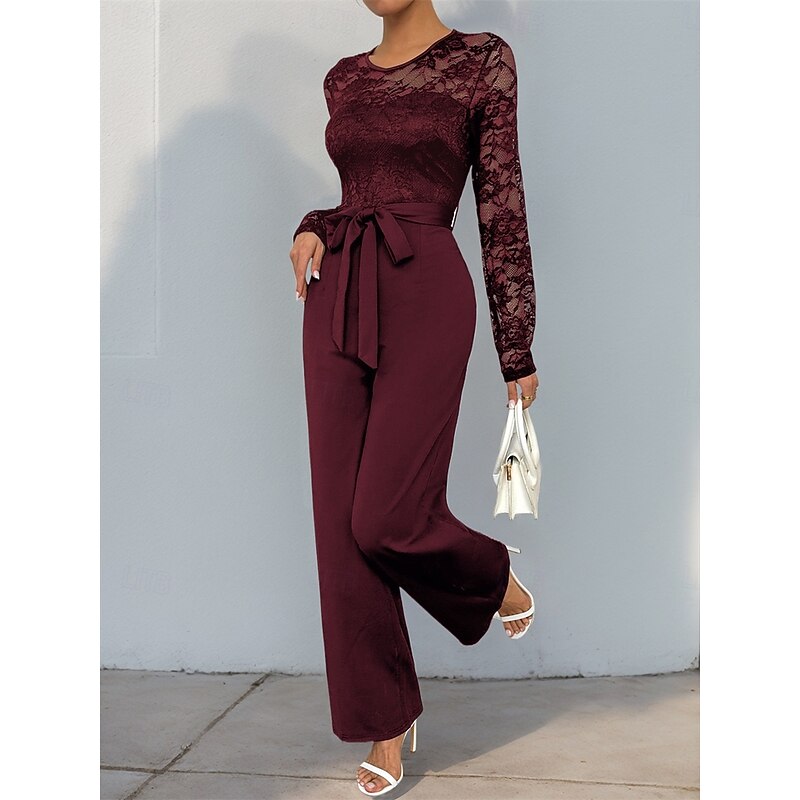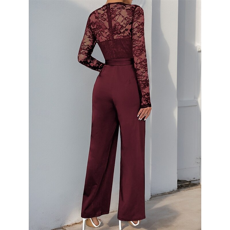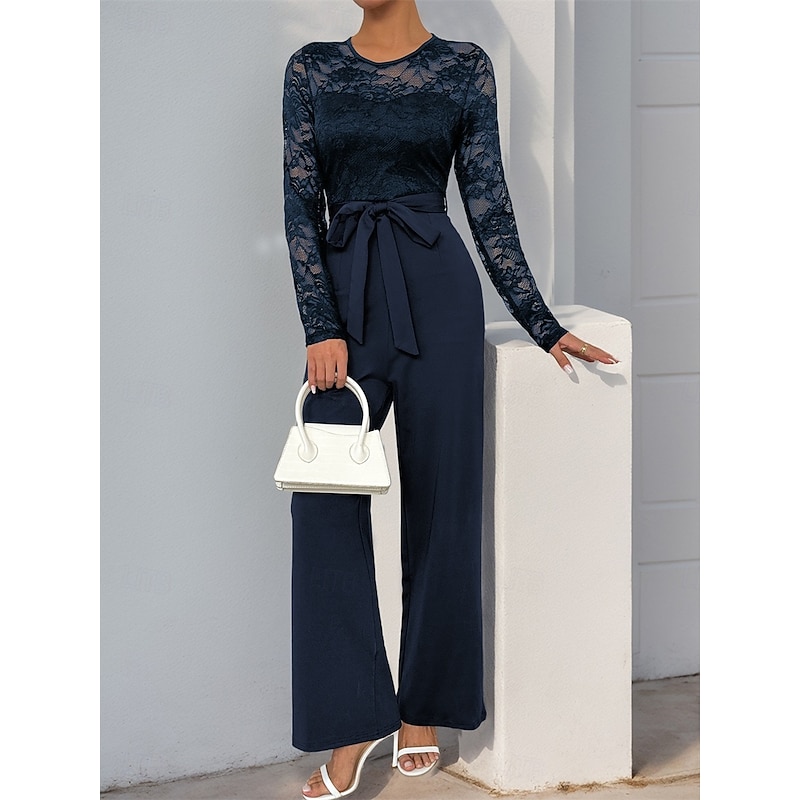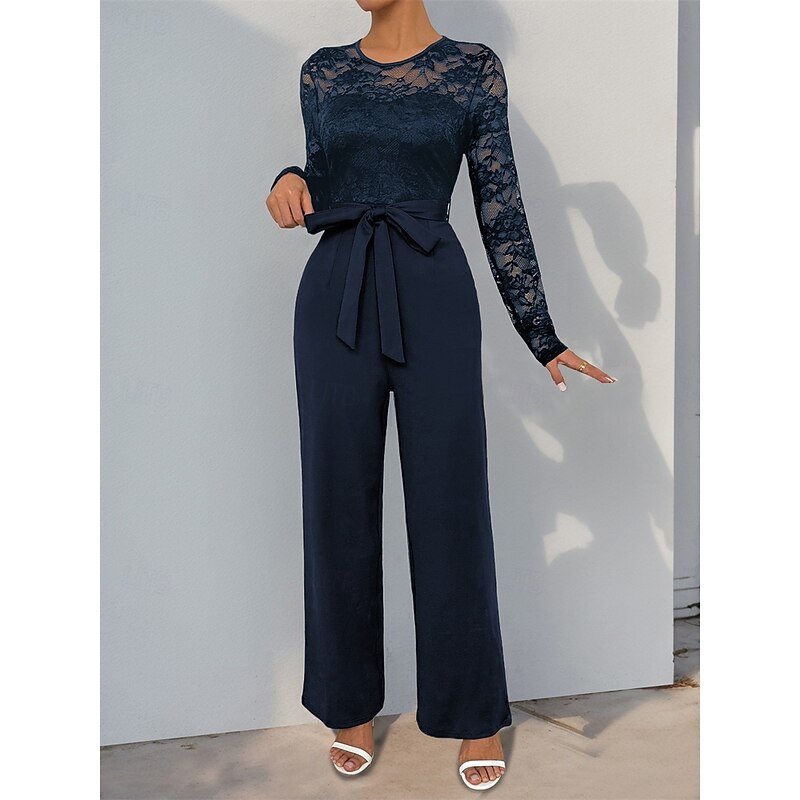 Jumpsuit / Pantsuit Mother of the Bride Elegant Casual Jewel Neck Floor Length Polyester Long Sleeve with Lace
