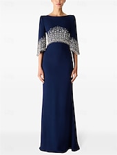 Why Choose Mermaid / Trumpet Quinceanera Dresses Elegant Dress Formal Wedding Floor Length Half Sleeve Crew Neck Satin with Beading?