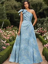This Metallic Marble Jacquard Dress A-Line Evening Gown Elegant Dress Formal Wedding Floor Length Sleeveless One Shoulder Brocade with Bow(s) Pleats Wedding Guest Dress combines elegant design with practical functionality. Every detail has been carefully considered to ensure you get the leading possible experience. The finest construction means this product will serve you well for years to come.