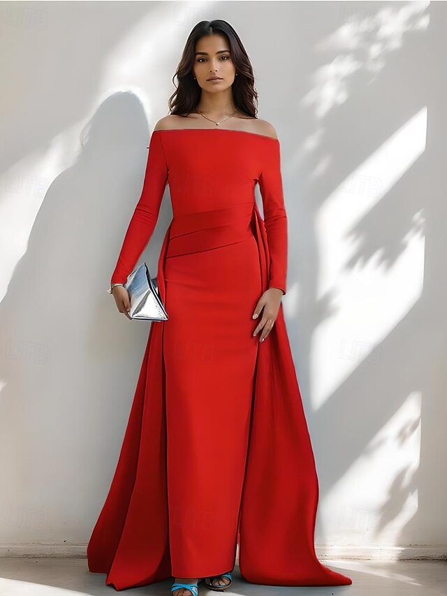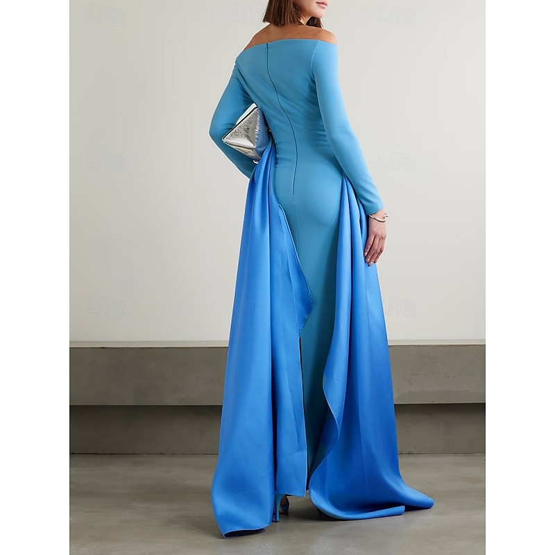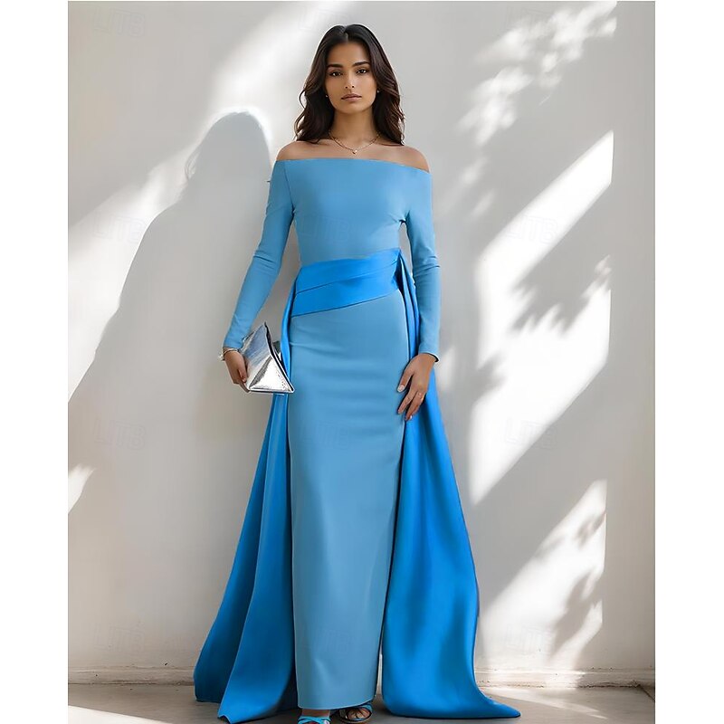 Why Choose A-Line Evening Gown Elegant Dress Stretch Crepe with Satin Overskirt Pleats Formal Wedding Floor Length Long Sleeve Off Shoulder 2025?