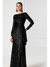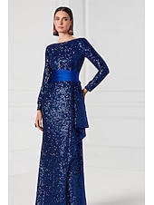 $144.99 - Blue Black Sheath / Column Evening Gown Elegant Formal Dress Formal Wedding Floor Length Long Sleeve Crew Neck Capes Sequined with Glitter Ruffles 2025 2025. Shop for cheap Sheath Evening Dresses online? Buy at lightinthebox.com on sale today!