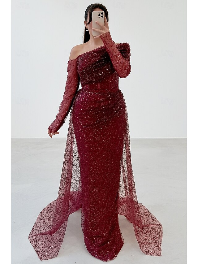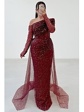 $169.99 - Red Black Sheath / Column Evening Gown Elegant Formal Dress Formal Wedding Floor Length Long Sleeve One Shoulder Sequined with Glitter 2025 2025. Shop for cheap Ball Gown Evening Dresses online? Buy at lightinthebox.com on sale today!