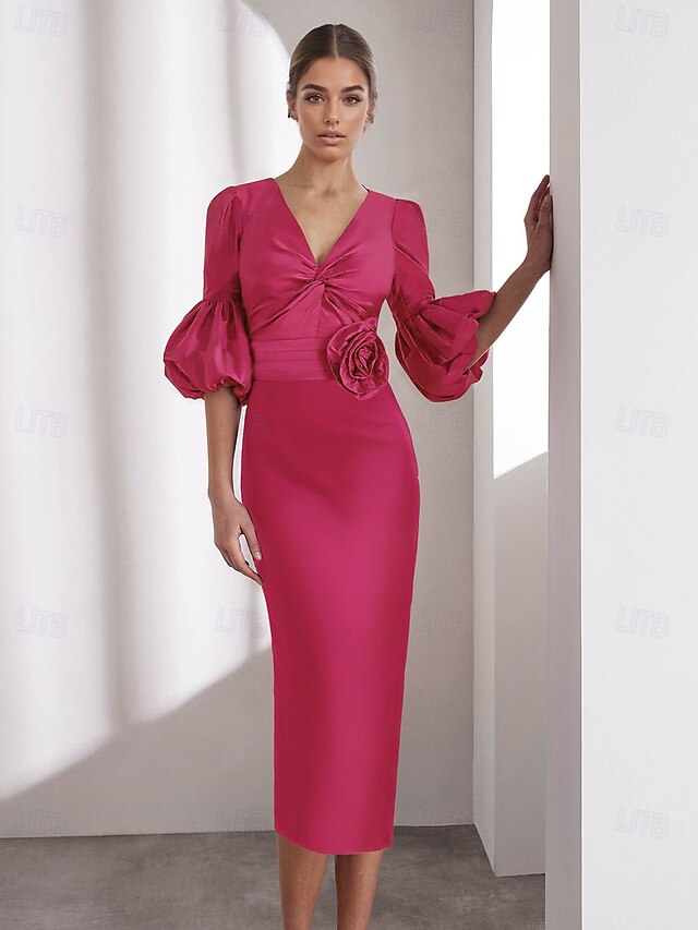 $129.99 - Column Satin Cocktail Dresses Elegant Formal Ankle Length Half Sleeve V Neck Pocket Italy Satin with Glitter Ruched 2025. Shop for cheap Cocktail Dresses online? Buy at lightinthebox.com on sale today!
