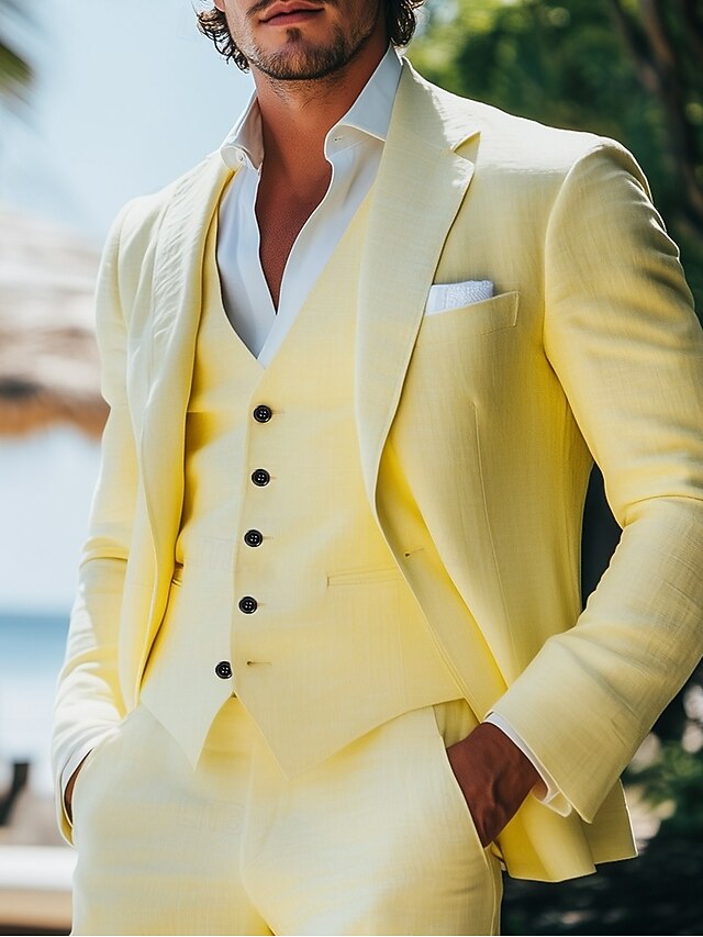 $139.99 - Men's Wedding Casual Linen Suits Daffodil Summer Yellow Fashion Formal Solid Colored Standard Fit 3 Piece Single Breasted One-button 2025. Shop for cheap Casual Suits online? Buy at lightinthebox.com on sale today!