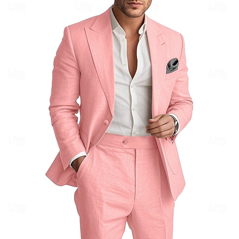 $115.99 - Men's Wedding Linen Suits Peaked Lapel Pink Sky Blue Fashion Casual Solid Colored Standard Fit 2 Piece Single Breasted One-button 2025. Shop for cheap Casual Suits online? Buy at lightinthebox.com on sale today!