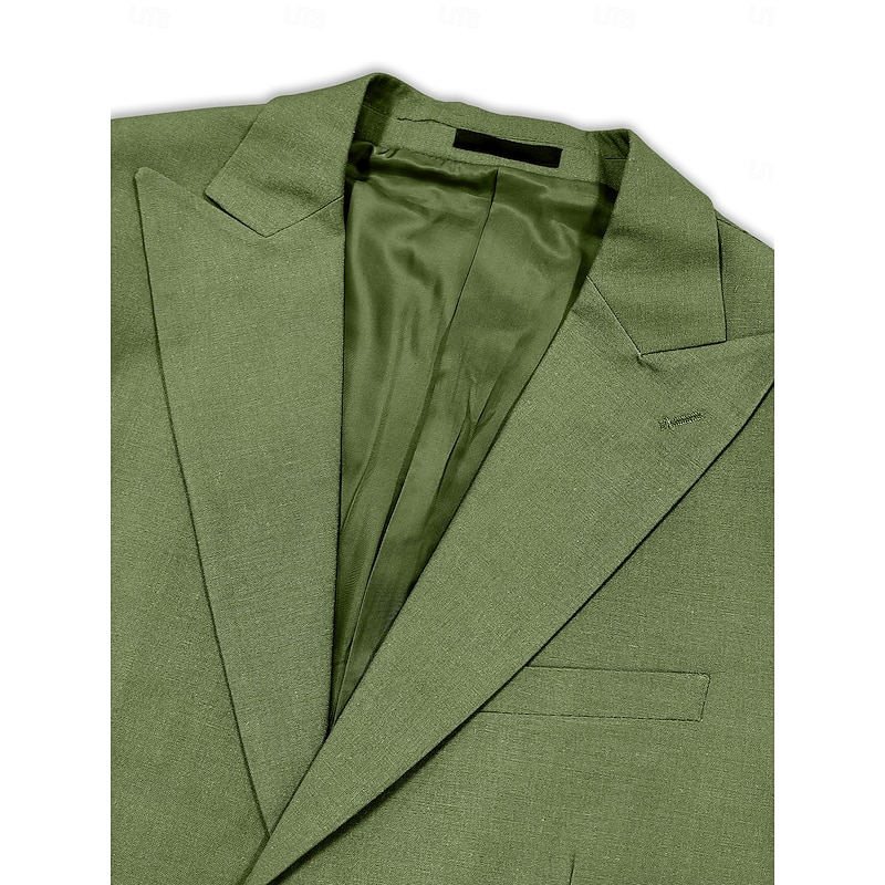 Men's Wedding Linen Suits Peaked Lapel Pink Sky Blue Fashion Casual Solid Colored Standard Fit 2 Piece Single Breasted One-button 11