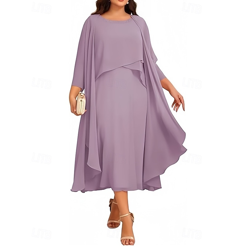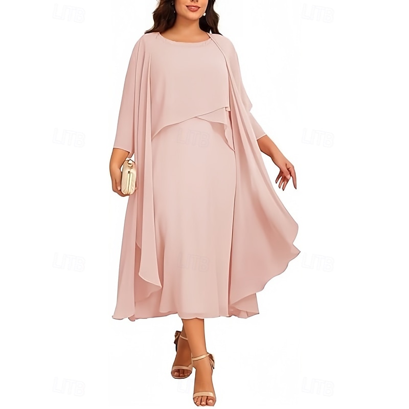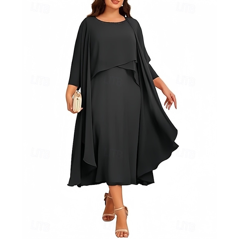 $159.99 - Two Piece A-Line Mother of the Bride Dress Elegant Vintage Jewel Neck Tea Length Chiffon 3/4 Length Sleeve with Beading 2025. Shop for cheap Mom's Dress Sets online? Buy at lightinthebox.com on sale today!