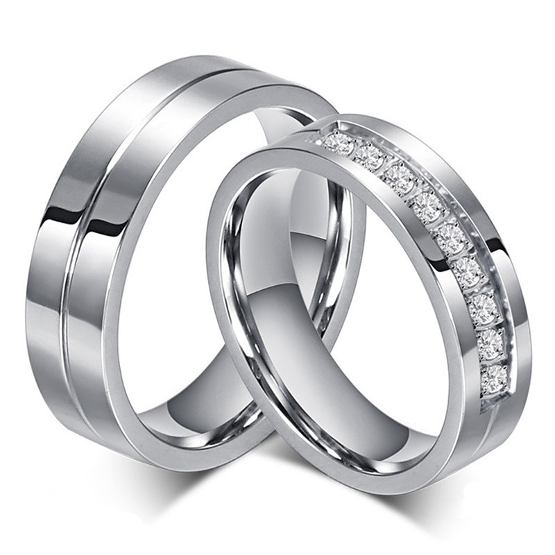 Why Choose couple rings for him and her stainless steel matching promise ring princess cut bridal wedding engagement band cubic zirconia cz ring for women men fancy bridal jewelry girls gifts?