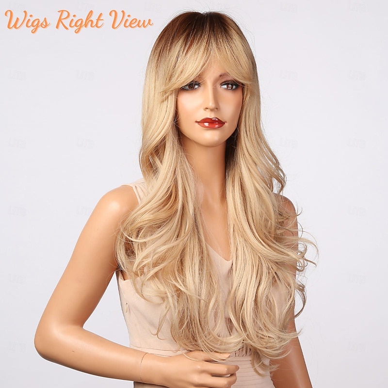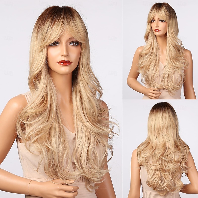 $21.99 - Blonde Wig with Bangs - Long Wavy Ombre Curtain Bang Wigs for White Women, Light Ash Blond Dark Roots Synthetic Heat Resistant Hair, Natural Cute Strawberry Wigs for Halloween/Christmas 2025. Shop for cheap Synthetic Trendy Wigs online? Buy at lightinthebox.com on sale today!