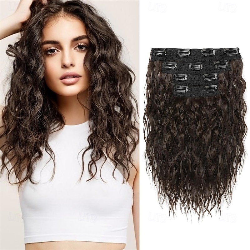 $26.99 - Clip in Hair Extensions - 4PCS 12 Short Curly Wavy Brown Hair Extensions with Invisible Lace Weft and Highlights 2025. Shop for cheap Clip in Extensions online? Buy at lightinthebox.com on sale today!