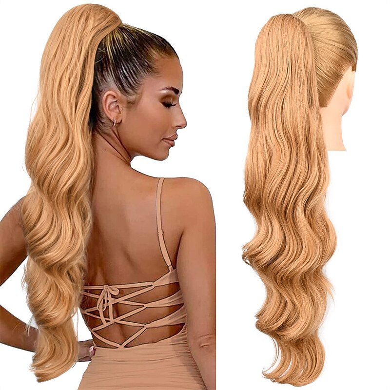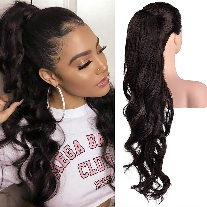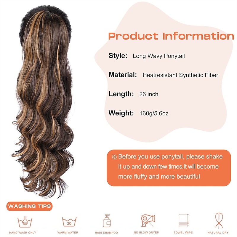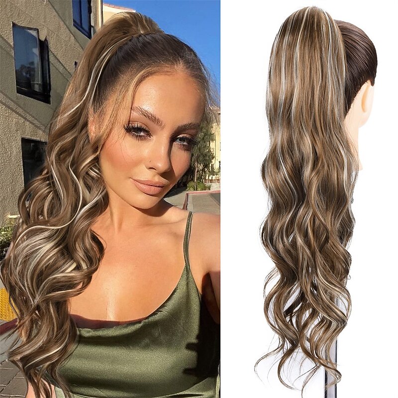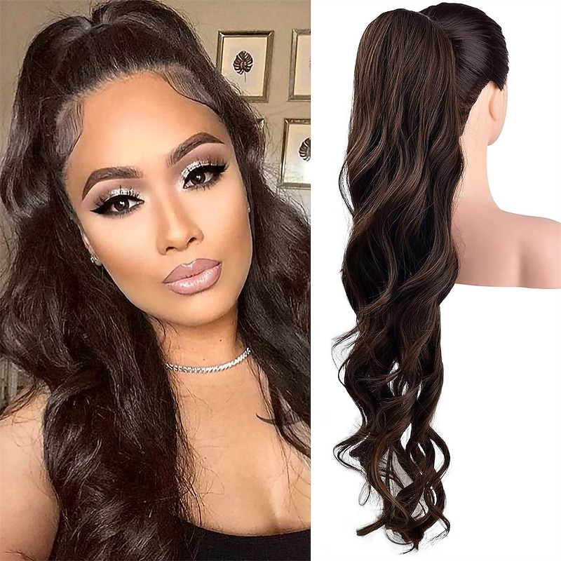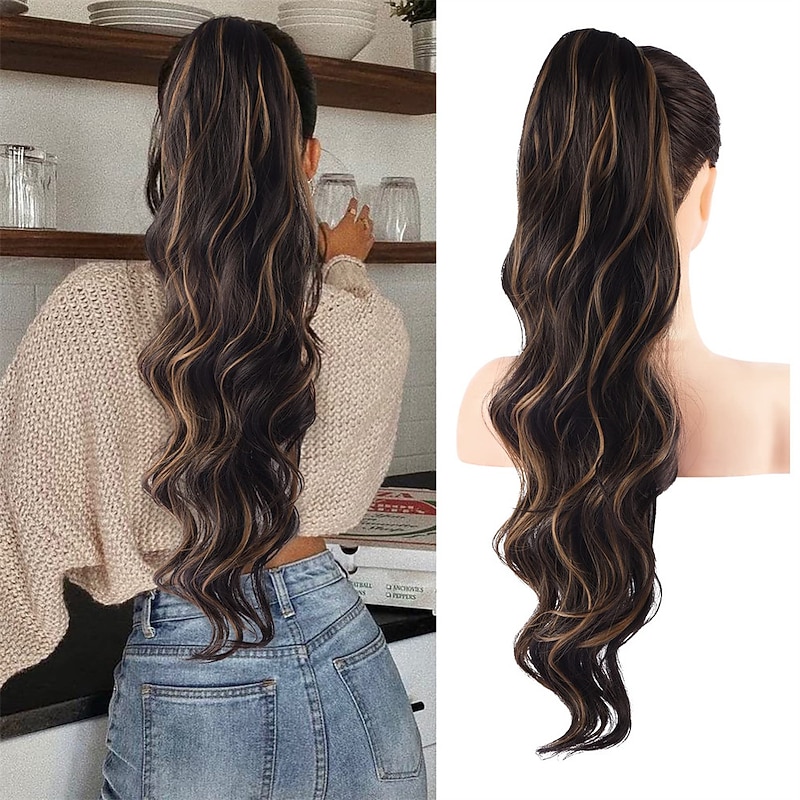 Why Choose Ponytail Extension Drawstring Long Wavy Pony Tail for Black Women Natural tender Clip in Ponytail Hair Extension Synthetic Heat Resistant Hairpiece 26 Inch 160 Gram Chocolate Brown with Blonde Hi?