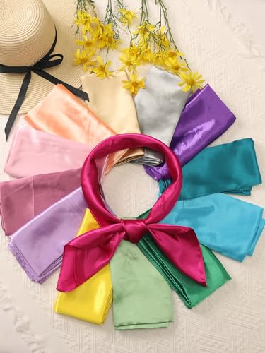 Fabric type: SatinMaterial: This solid color scarf is made of satin fabric, smooth, shiny, soft, lightweight, breathable, suitable for any time, any season, all kinds of clothing and any occasion.Color & Size: There are many colors to choose from to add a bright color to your daily look. The size of this neckerchief is 90x90cm/35.4x35.4 inches(LxW), which is a large silk-like neck scarf, even large enough to be used as a shawl and scarf top. Please select a size before ordering.Features: Solid color pattern, simple and generous, retro and elegant, a variety of color designs, bright colors can easily meet your daily matching needs.Versatile: This solid satin scarf can be worn around the neck, tied to your hair as a hair accessory, tied around your wrist, tied to the handbag handle or a hat as a decoration, wrapping your hair when you sleep at night, and is even large enough to be used as a shawl and top, making yourself more fashionable.Nice Gift: Silky square satin headscarf is an ideal gift for female relatives and friends, but also as a birthday party, Valentine's Day, anniversary, or graduation sweet gift. A chic and charming clothing accessory, can be used in dating, travel, dance, photo, business trip, party, wedding, vacation and other casual/formal occasions. Perfect for everyday use. first-class materials and excellent craftsmanship ensure long-lasting durability.