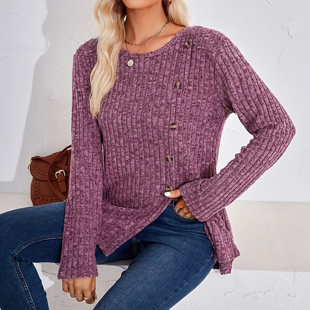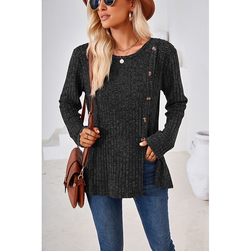 sought-after ! T shirt Tee Women's Black Wine Blue Solid / Plain Color Button Split Daily Fashion Round Neck Regular Fit S