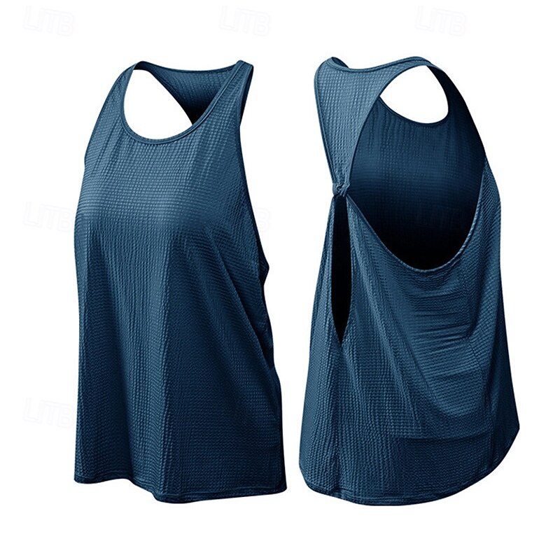 More information about Women's Workout Tank Open Back Sleeveless Vest / Gilet Casual Athleisure Solid Colored prompt Dry silky Breathable Gym Workout Walking Jogging Sportswear Activewear Black Navy Blue Blue