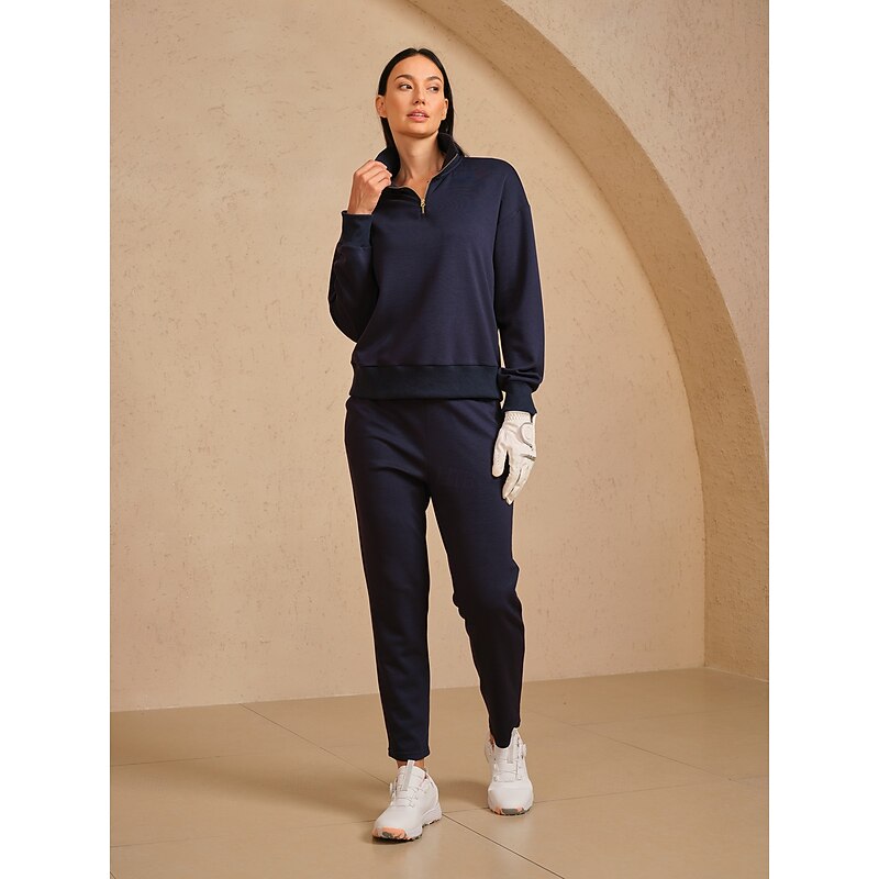 Why Choose Women's Golf Pullover Sweatshirt Black Ivory Dark Navy Long Sleeve Thermal snug Top Fall Winter Ladies Golf Attire Clothes Outfits Wear Apparel?