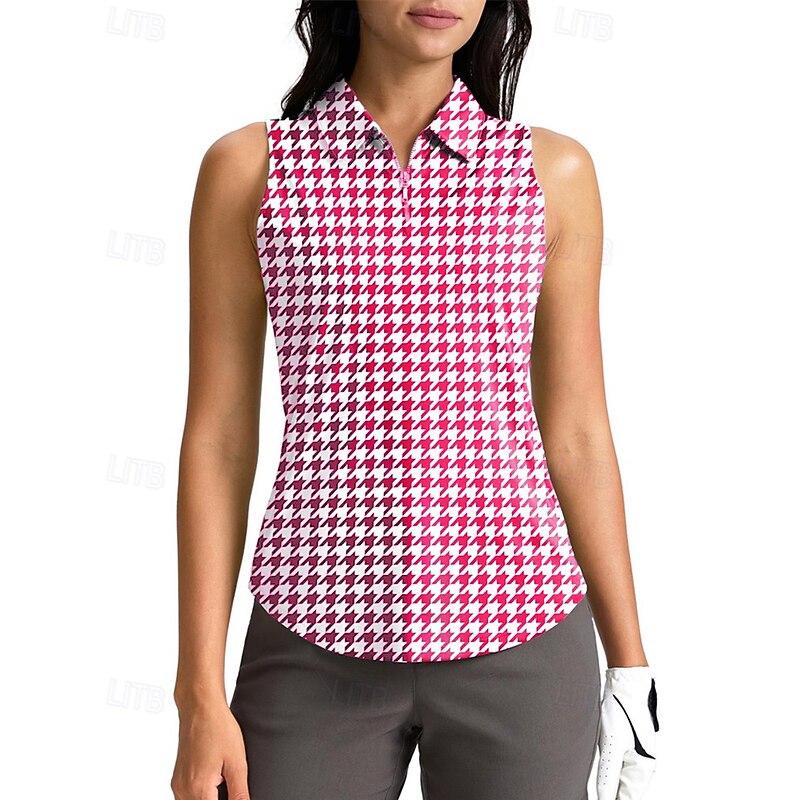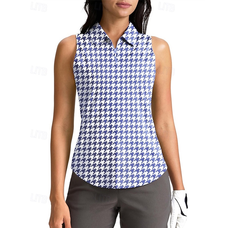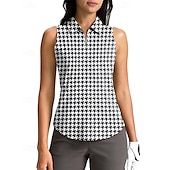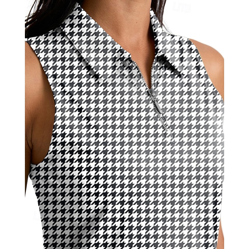 sought-after ! Women's Houndstooth Sport Shirt Golf Polo Shirt Tennis Shirt Sleeveless Zipper High Elasticity Moisture Wicking Breathable Tennis Golf Pickleball Turndown Zip Collar Shirt Top Black Red Blue Tennis