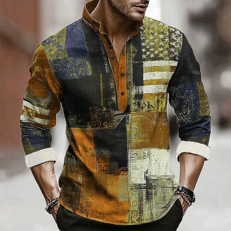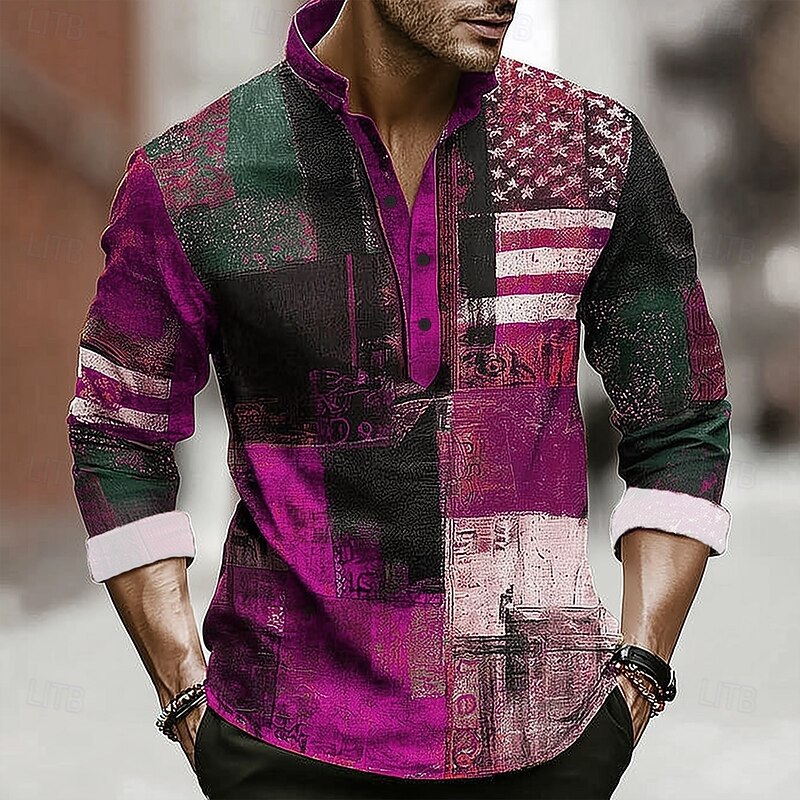 Why Choose Men's Geometric Color Block Patchwork Shirt Henley Shirt Stand Collar Shirt Long Sleeve Vintage Retro Vacation Casual Summer Spring Mandarin Buttons Linen prefer Shirt Red Blue Purple Orange Green?