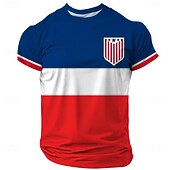 Highlights [Fabric] : Experience comfort and breathability with this t-shirt, crafted from high-quality polyester fabric. The lightweight and stretchy material ensure a comfortable fit, perfect for everyday wear and outdoor activities. [Fit] : Designed with a tailored fit, this t-shirt provides a flattering silhouette that caters to a wide range of body types. The crew neck and short sleeves offer a classic and versatile look suitable for various styles. [Design Highlights] : This patriotic t-shirt features a bold American US flag pattern in a striking blue color, reflecting national pride. The 3D print and chest badge add a sporty and dynamic flair, while the matching stripe accents on the sleeves enhance its athletic appeal. [Occasions] : Ideal for spring and summer, this t-shirt is suitable for outdoor adventures, athleisure activities, and casual outings. Whether you're enjoying a day out in the sun or cheering on your favorite team, this shirt makes a bold and sophisticated statement. [Size] : Available in a wide range of sizes from S to XXXL, ensuring a suitable fit for adults seeking both comfort and style. Perfect for everyday use. first-class materials and excellent craftsmanship ensure long-lasting durability.