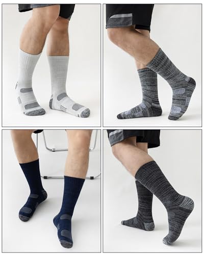 Mens Cotton Boot Crew Socks, 5 Pairs Full Cushion Thick Socks Moisture-Wicking & Reinforced for Work Hiking Walking Outdoor