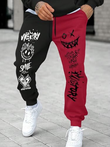 - Features: color block sweatpants, joggers pants for men, cartoon and letter print, drawstring waist, with pockets