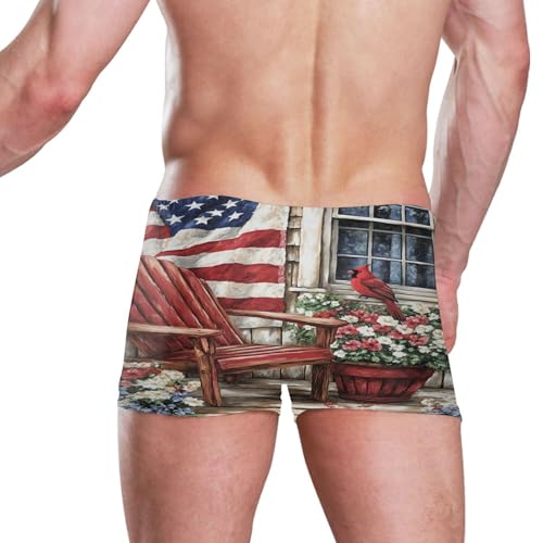 July 4th American Flag Flowers Chair Mens Swim Trunk Swimwear Swim Brief Square Leg Board Short S S0407310