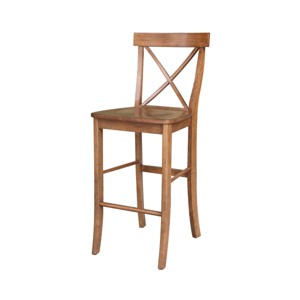30" X Back Barstool Distressed Oak International Concepts: Solid