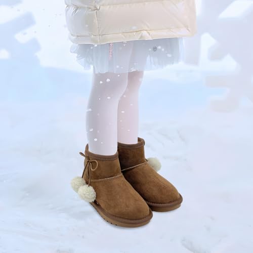 Sole material: Polyvinyl ChlorideShaft height: AnkleOuter material: Faux SuedeClosure type: Pull-On【sleek Boots for Girls】Classic solid color, comfortable and stylish, the most popular kids boots in this winter! Soft synthetic suede upper along with being warm and comfy, Embellished with lovely bow that make the most charming addition to this winter girls boots.【Warm & Soft Fur】These cute snow boots for kids feature a faux suede upper that provides better insulation against the cold,and thick fur interior lining that wraps little feet in warmth and comfort.【Non-Slip Soles】Flexible anti-slip outsole built for maximum grip on snowy terrain avoid kids slipping in sports. Designed for everyday all-day comfort, with a soft footbed and a thick and lightweight sole.【Easy On/Off】 Say goodbye to fussing with laces or buckles on snow boots! Our boots slip on and off easily, so your little ones can spend less time getting ready and more time enjoying winter.【Suitable Occasion】Our girls fashion winter boots are suitable for varities of clothing, and they are perfect for walking the dog, outdoor or indoor playing, parties , wedding and school wearing. It will be the best choice for fall and winter. Perfect for everyday use. top-grade materials and excellent craftsmanship ensure long-lasting durability.