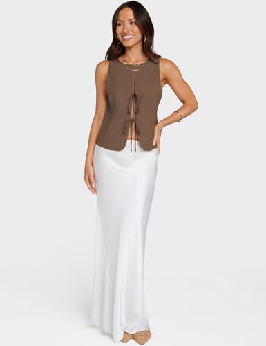 UEU Womens Tie Front Vest Top Bow Open Front Crop Tank Tops Summer Casual Sleeveless Shirt 2025 Y2K Trendy Outfits 2