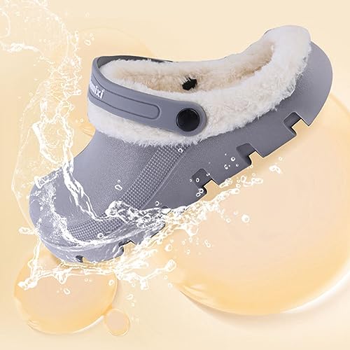 Sole material: Polyvinyl ChlorideOuter material: Polyvinyl Chloride (PVC)Closure type: Pull-OnWater resistance level: Water Resistant【MEN WOMEN FUR LINED CLOGS】: The fur lining of these unisex clogs is sewn and fixed secured in place with a snap. The warm fleece lining makes the shoe becomes a pair of comfortable winter slippers.【INDOOR OUTDOOR FUZZY SLIPPERS】: Our unisex winter slippers is made of ultra-light non-toxic. Synthetic sole. Environmental friendly foam cushioning sole for comfort and surface-gripping traction. It's a must have retro slippers in Winter days.【WINTER GARDEN CLOGS SHOES】: Breathable and comfort plush fleece fur lining, softly wrap your feet and offer you warm and fuzzy feelings inside. The first-class upper provides excellent water resistance, it makes easier for you to around the house, go to the garden or wet grass. It is easy to clean with water and quick to dry.This Clogs is very warm. In order to avoid sweating, you'd better put on socks to keep the inner lining clean and no odor.【LINED CLOGS FOR WOMEN】: Our quality soft clogs is anti-slip and noise, absorbs noise while walking on the floor. The material itself also provides protection for the floor from scratches. Lightweight and odor-resistant.【LINED CLOGS FOR MEN】: Our fleece lined slippers is great for indoor or outdoor use. You can use them for house slippers when you relaxing in you home, you can wear them go walk garden yard beach pool or bathroom, and for travel or play. These clogs shoes can also be gifts for yourself, parents, friends to offer them a warm winter. Perfect for everyday use. High quality materials and excellent craftsmanship ensure long-lasting durability.