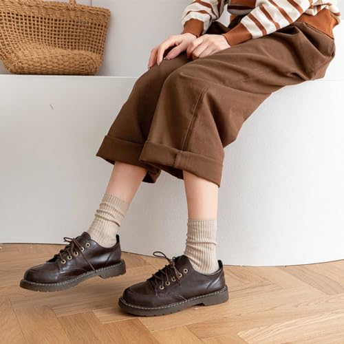 Women Sweat-absorbent Socks Above Ankle High Crew Socks for Women Girls Ladies Clothes 6 Pairs (Cotton Blend, Solid Color)