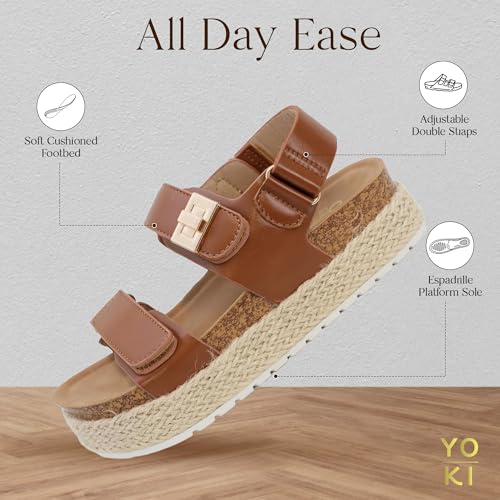 YOKI TRIBECA-Y Platform Girls Sandals With Double Strap And Gold Buckle - Lightweight Toddler Sandals - Cushioned Footbed Sandal 5