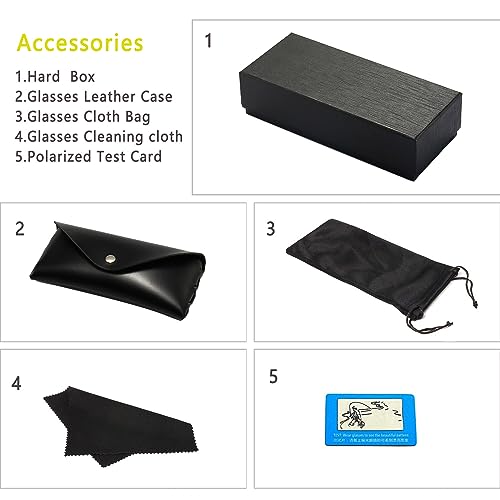 • ★ Package Content ▶1 X Polarized Sunglasses,1 X Microfiber Pouch,1 X Hard Case,1 X Microfiber Glasses Cleaning Cloth,1 X Polarized Test Card
