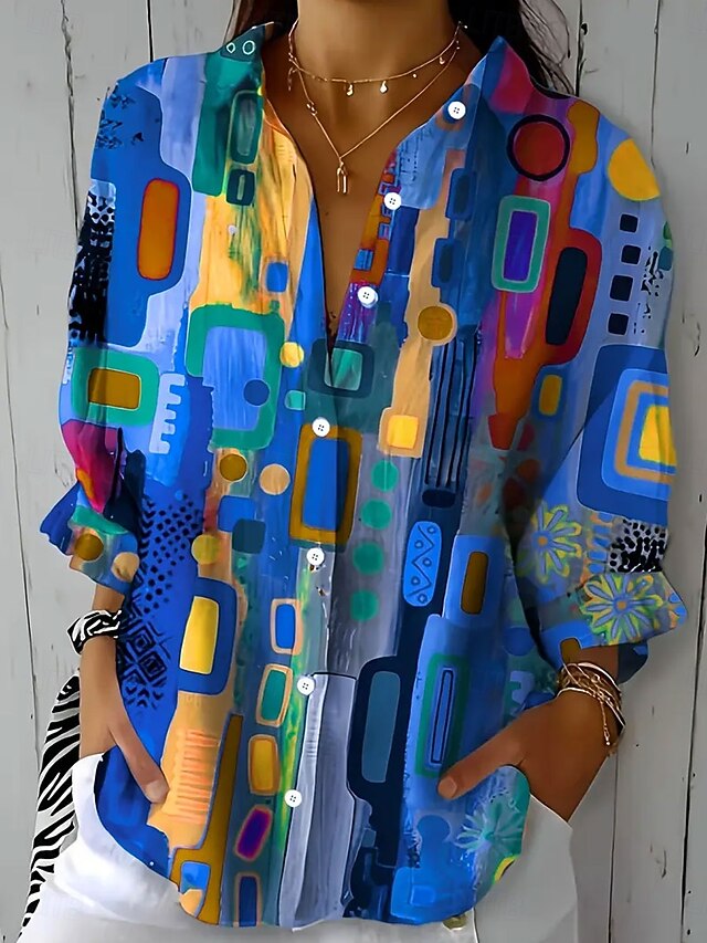 This Women's Shirt Button Down Tunic Shirt Collar Long Sleeve Graphic Geometric Daily contemporary Casual Regular Tops Work Daily s Print Blue Green Spring combines elegant design with practical functionality. Every detail has been carefully considered to ensure you get the best possible experience. The top-grade construction means this product will serve you well for years to come.