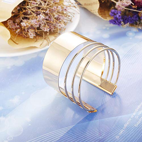 • WOMEN JEWELRY SET--One Gold Necklace for Women , Designed With 3 Semi-circles Exaggerated Pendant; One Gold Open Cuff Bracelets; A Pair Gold Drop Earrings. iconic Gold Bangle Necklace Set, Fashion Pendant Earrings. This Gold Jewelry Set Can Match Dress and One Shoulder Jumpsuit Well, Are excellent Women Accessory to Make You More Elegant And Charm
