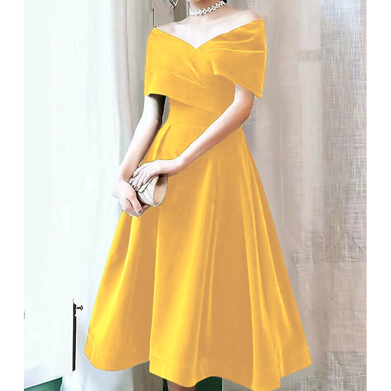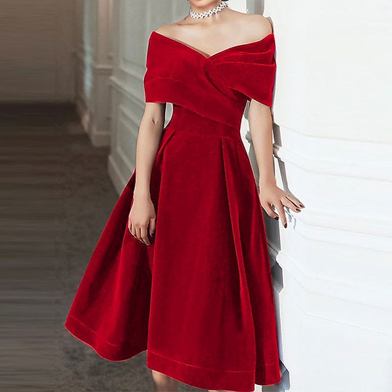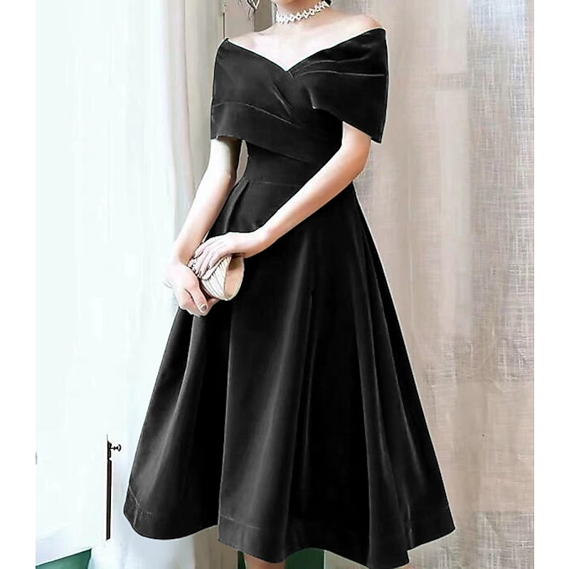 This A-Line Cocktail Dresses Elegant Dress Wedding Guest Knee Length Short Sleeve Off Shoulder Velvet with Pleats Pure Color Dresses combines elegant design with practical functionality. Every detail has been carefully considered to ensure you get the best possible experience. The remarkable construction means this product will serve you well for years to come.