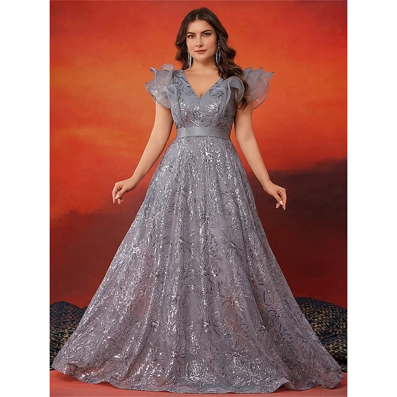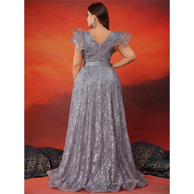 More information about A-Line Plus Size Dresses Elegant Curve Dress Formal Wedding Floor Length Sleeveless V Neck Lace with Sequin