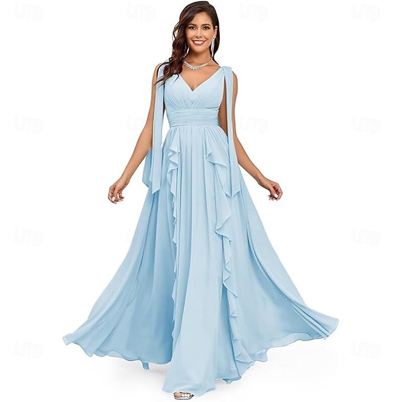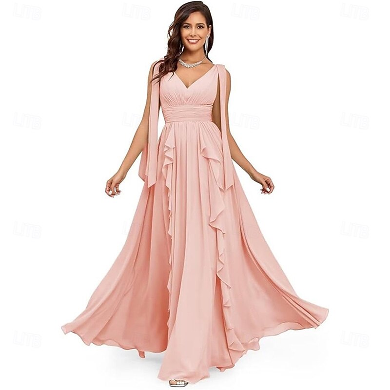 $94.99 - A-Line Quinceanera Dresses Elegant Dress Performance Christmas Floor Length Sleeveless V Neck Chiffon Backless with Pleats 2025. Shop for cheap Semi-formal / Cocktail online? Buy at lightinthebox.com on sale today!