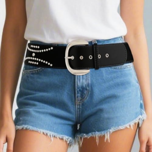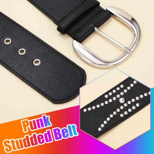 sought-after ! COSYDAYS Silver Wide Leather Belt Rivet Chunky Belts Fashion Punk Waist Y2K Belt for Women