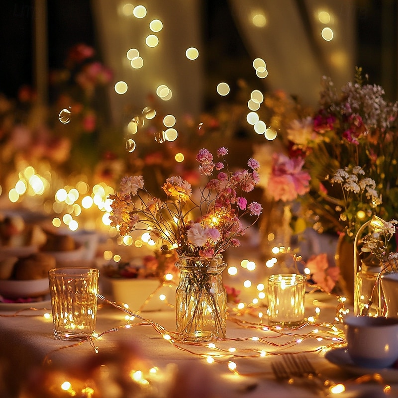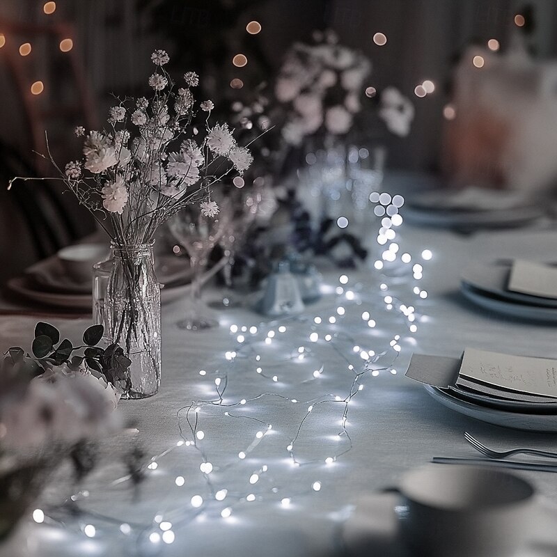 $9.49 - Elegant Wedding Reception Party 5M 50 LED Silver Wire String Lights, Battery-Powered Fairy Lights for Home, Christmas, Wedding & Party Decoration 2025. Shop for cheap Battery String Lights online? Buy at lightinthebox.com on sale today!